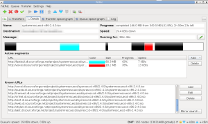 In the previous post, I wrote about aria2, a command-line downloader. But, still I need a better downloader in graphical user interface. Because I have the problem to download a large file from SourceForge.net. Multi-segmented downloading in SourceForge.net servers always fail, so I need to add more mirrors for multi-segmented download. However, this does not work well with aria2.